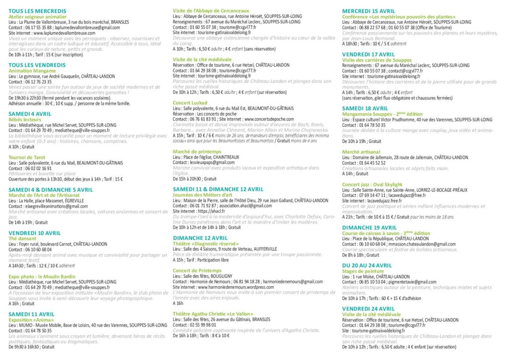 Contact : 01 60 55 07 38 ; tourisme@ccgvl77.fr