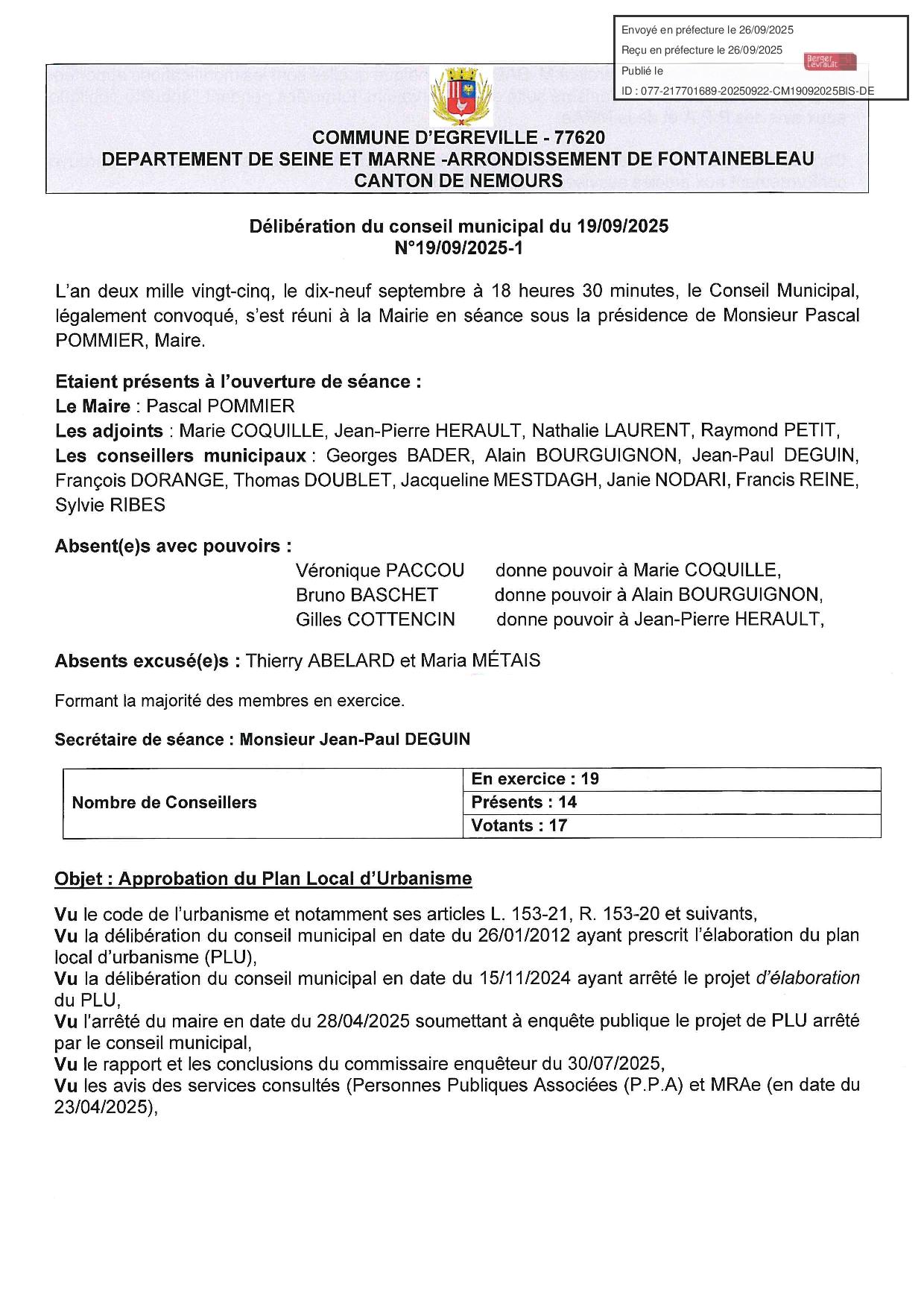 En Janvier 2012, le Conseil Municipal a décidé de doter Egreville d’un Plan Local d’Urbanisme (P.L.U) pour remplacer le plan d’occupation des sols et donner ainsi à la commune la maîtrise de ses décisions d’urbanisme (réglementation en matière d’emprise au sol, de hauteur des bâtiments ou d’espaces verts).